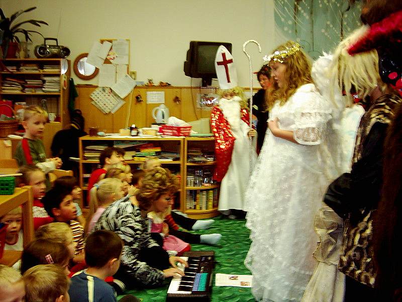 Naši páťáci se proměnili v nebe i peklo. Dárky, které mateřákům i svým mladším spolužákům přinesli se líbily.