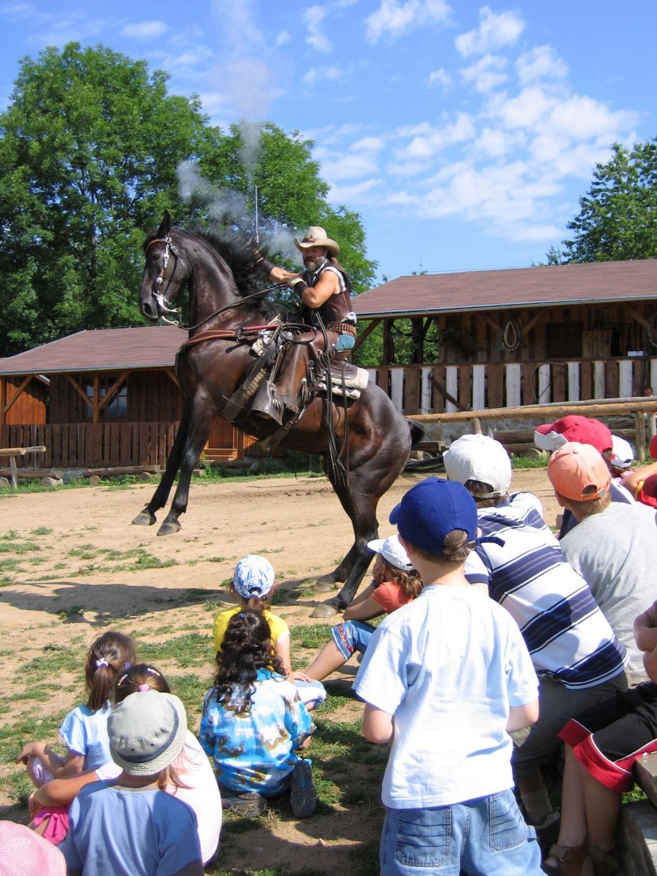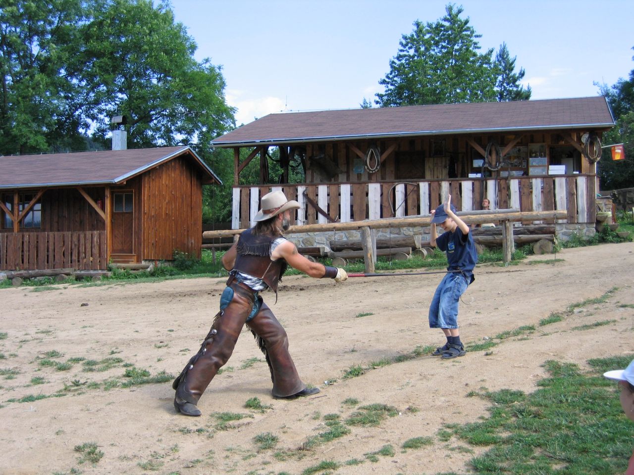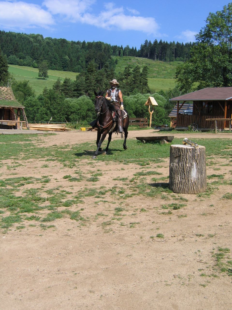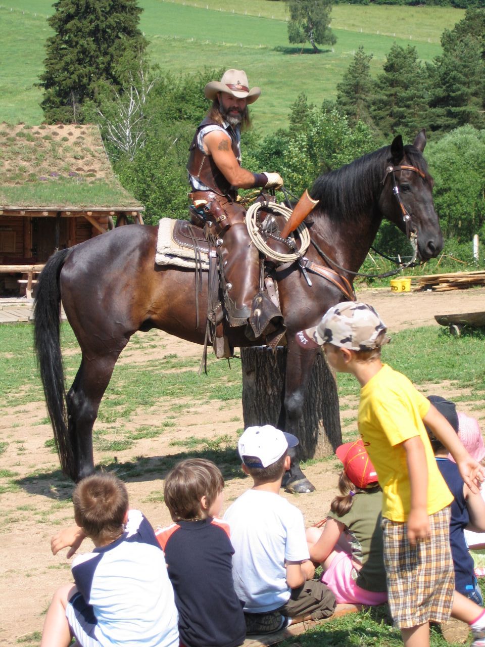 Westernový ranč u Běšin Zakončením zlatokopeckého klání v Pilském Mlýně na škole v přírodě byla návštěva westernového městečka, kde si děti mohly vyzkoušet jízdu na koni, zacházení s bičem, sekerkou, ostěpem… Své kovbojské umění předvedl ryzí kovboj Jim, na kterém děti mohly oči nechat. Zážitků a suvenýrů si snad odvezly dost.