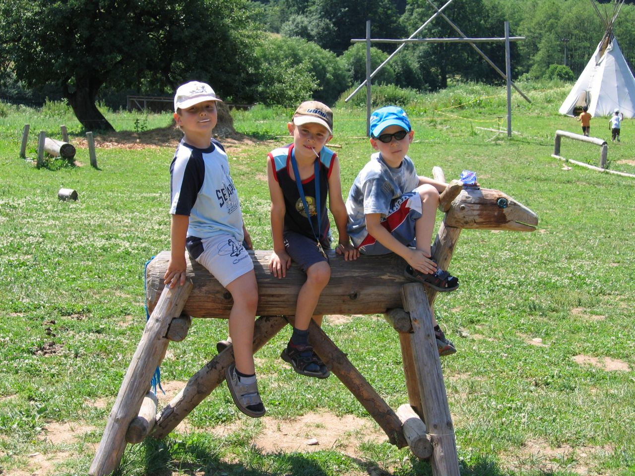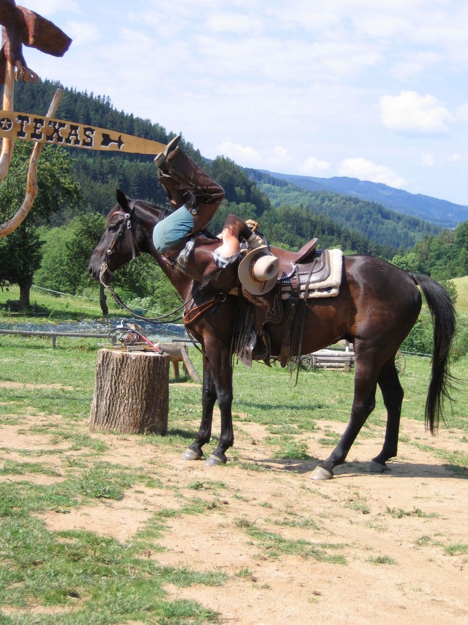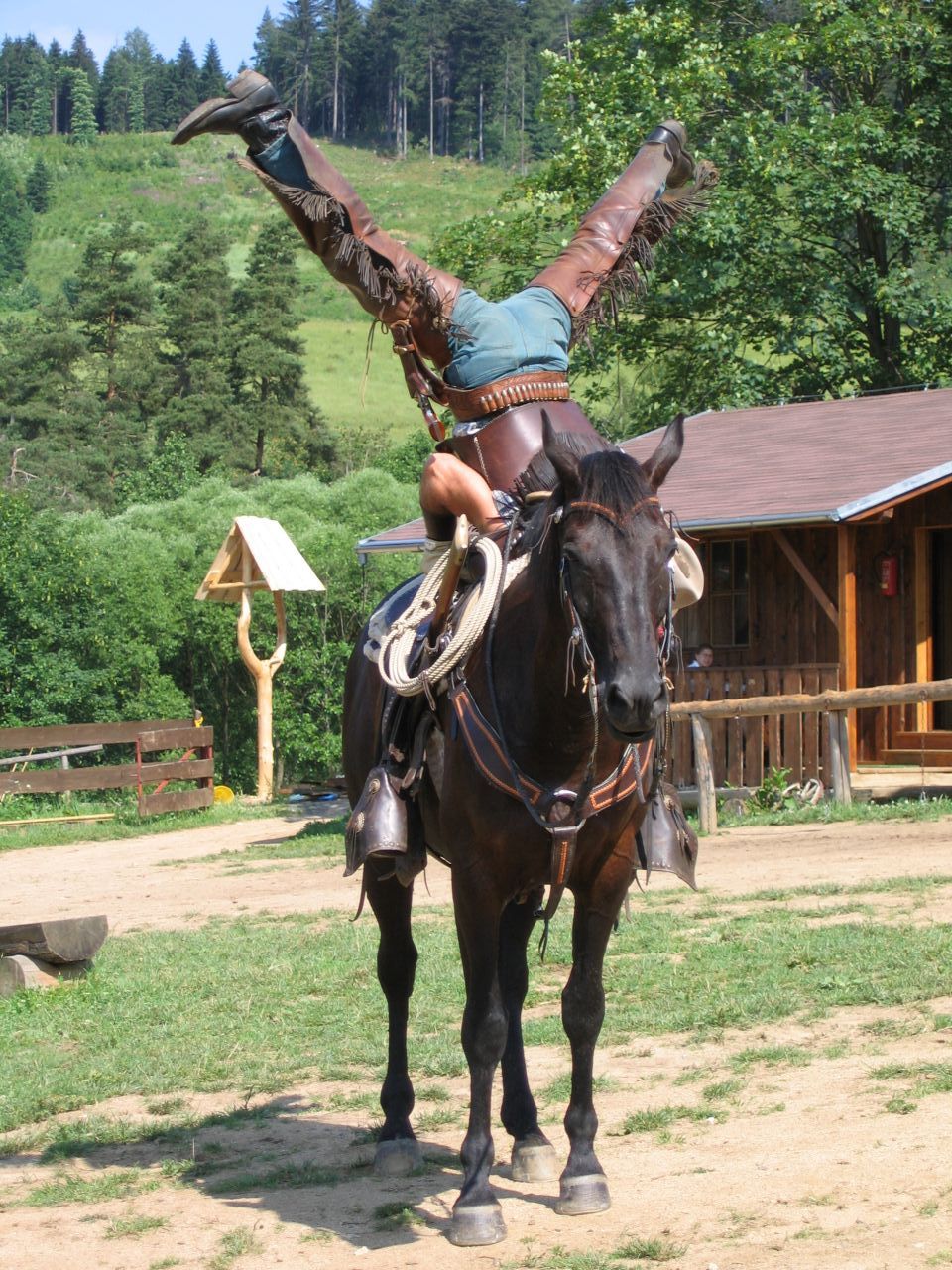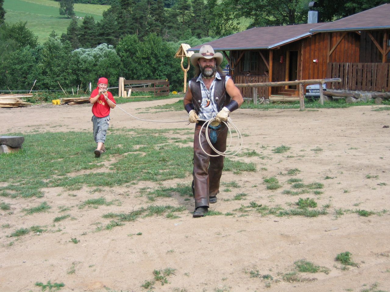 Westernový ranč u Běšin Zakončením zlatokopeckého klání v Pilském Mlýně na škole v přírodě byla návštěva westernového městečka, kde si děti mohly vyzkoušet jízdu na koni, zacházení s bičem, sekerkou, ostěpem… Své kovbojské umění předvedl ryzí kovboj Jim, na kterém děti mohly oči nechat. Zážitků a suvenýrů si snad odvezly dost.
