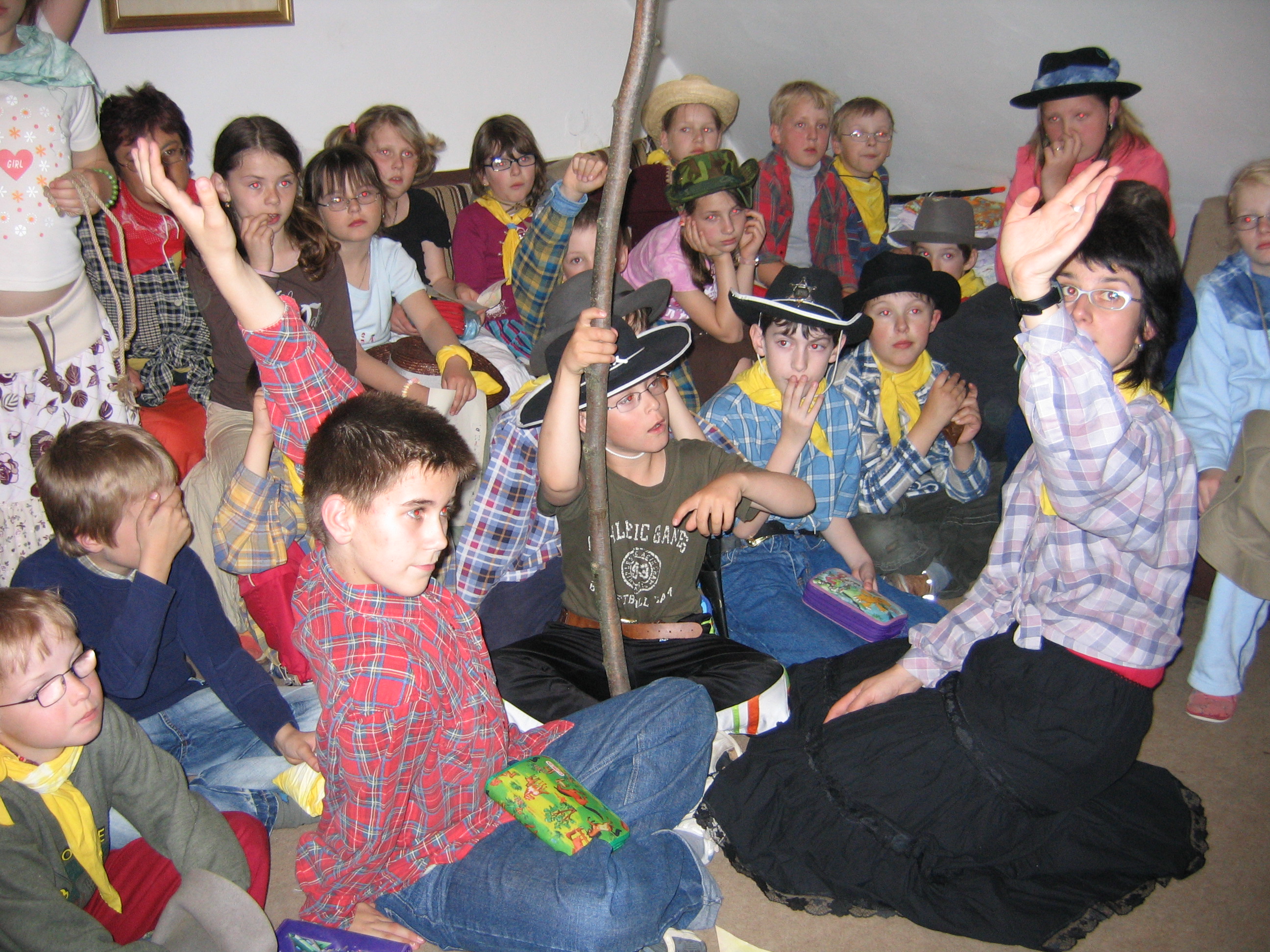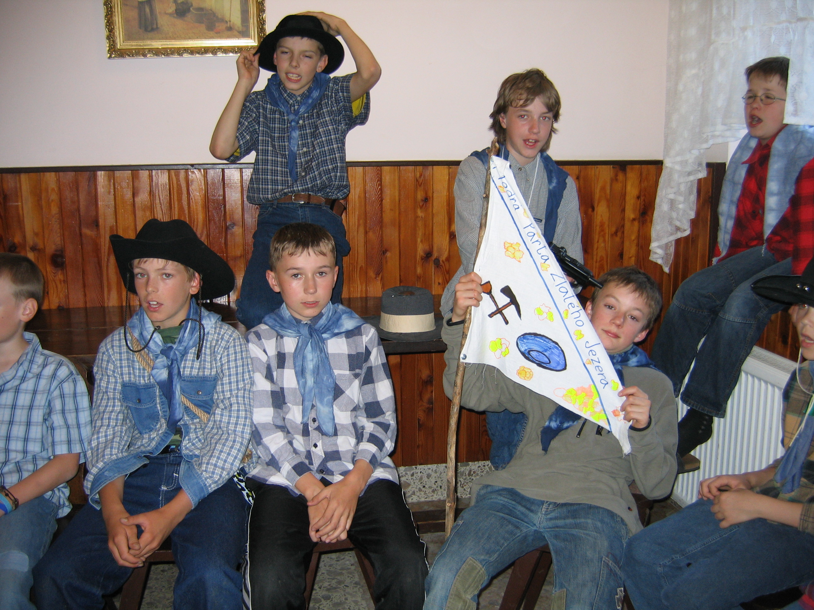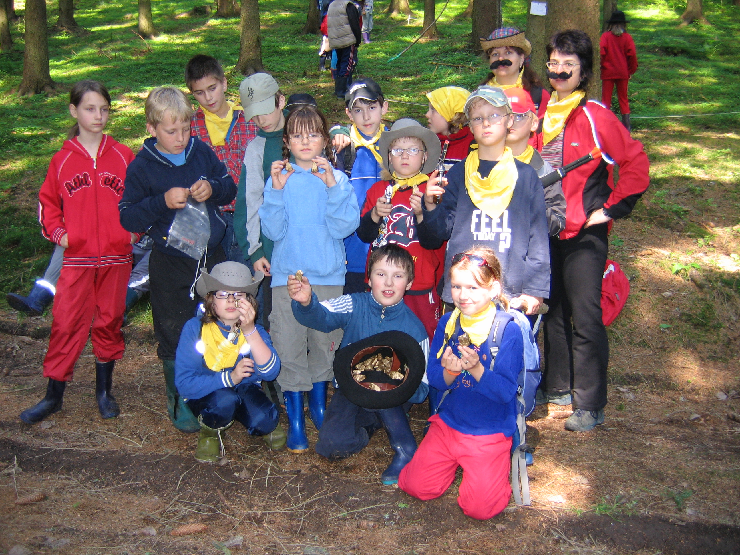 Letošní škola v přírodě se nesla v duchu ZLATÉ HOREČKY. Všechny třídy se na pobyt v Pilském Mlýně pečlivě připravily – zlatokopecké party si nabatikovaly nepostradatelné šátky a připravily si všechno vybavení i oblečení.