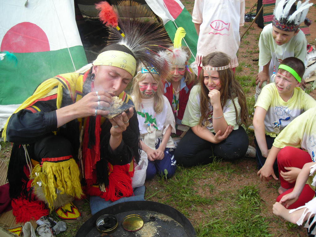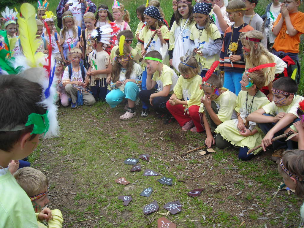 Tato škola v přírodě byla v indiánském duchu. Vyráběli jsme totem, zbraně a lovili jsme různá zvířata. Každý večer jsme na indiánském potlachu přivolávali Šamana. Poslední den za námi přijeli opravdoví Indiáni a učili nás různé tance, ukázali nám opravdové teepee.